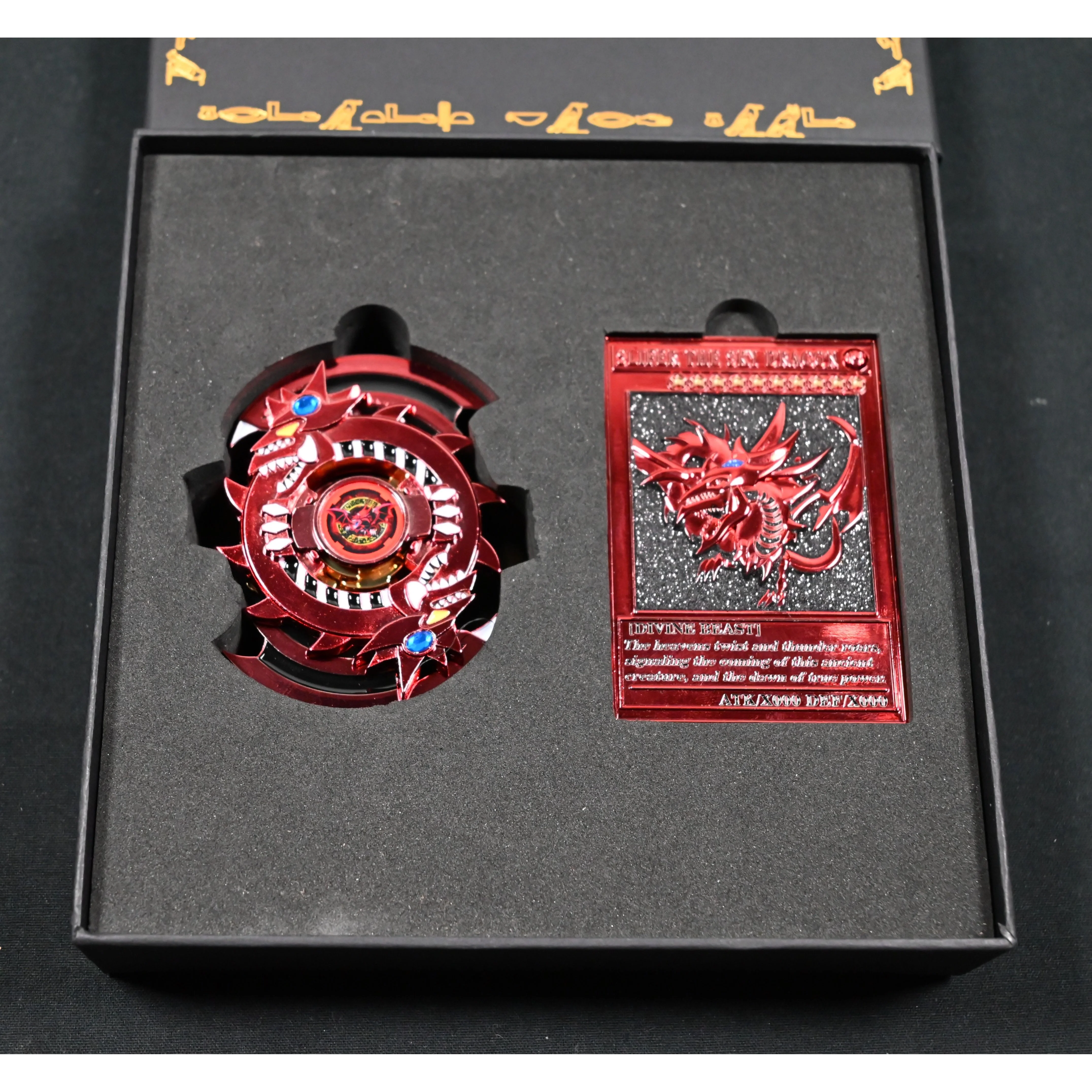 Showcasing our custom Slifer beyblade.
