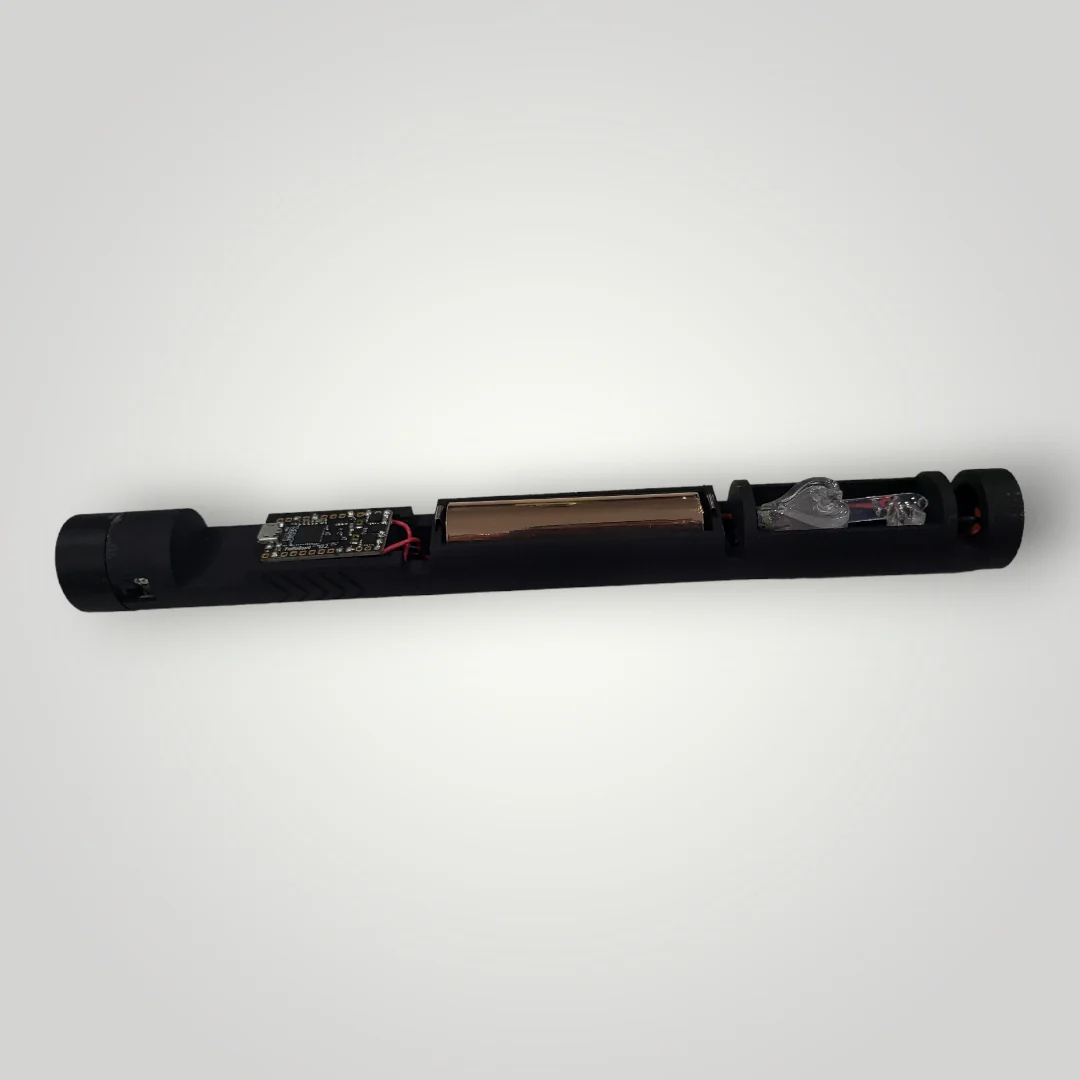 Designed to hold Proffie V2.2. A removeable 186550 battery and a 24mm speaker with two brass tactile switches.